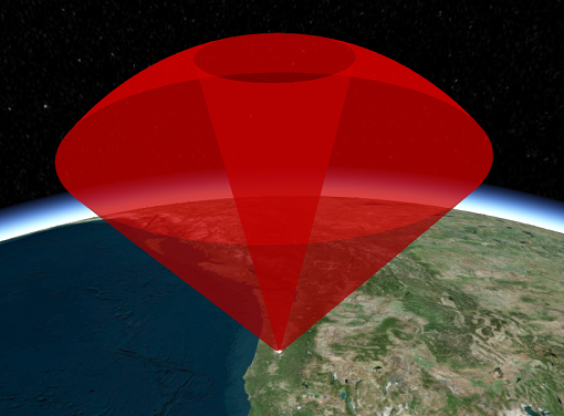 // Example 2. Sensor pointing straight down with its dome intersecting the ellipsoid