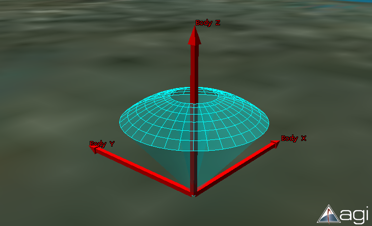 (ConicSensor#radius). The sensor's principal direction is along the positive z-axis. Clock