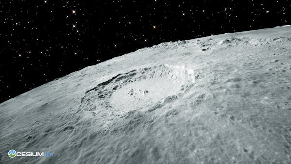 Cesium Moon Terrain is complete 3D Tiles of the lunar surface that enables 3D visualizations, simulations, and analytics to support advanced digital twin creation. Cesium Moon Terrain combines multiple datasets available from NASA’s Lunar Reconnaissance Orbiter (LRO) into a single tileset with the highest resolution data located around the critical polar regions of the Moon.