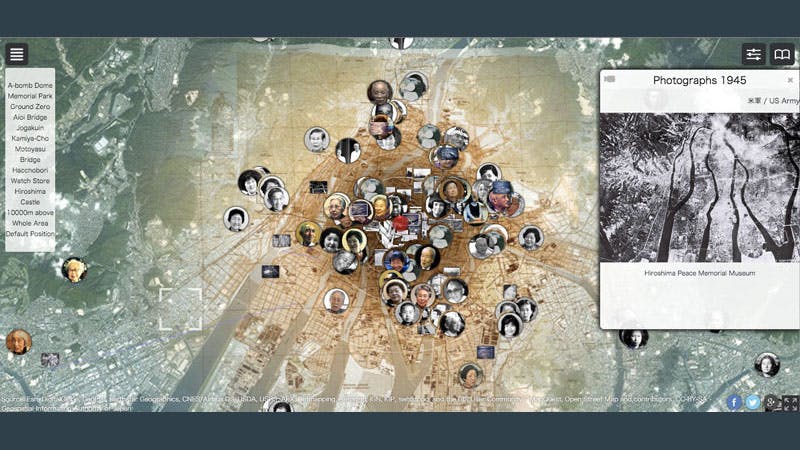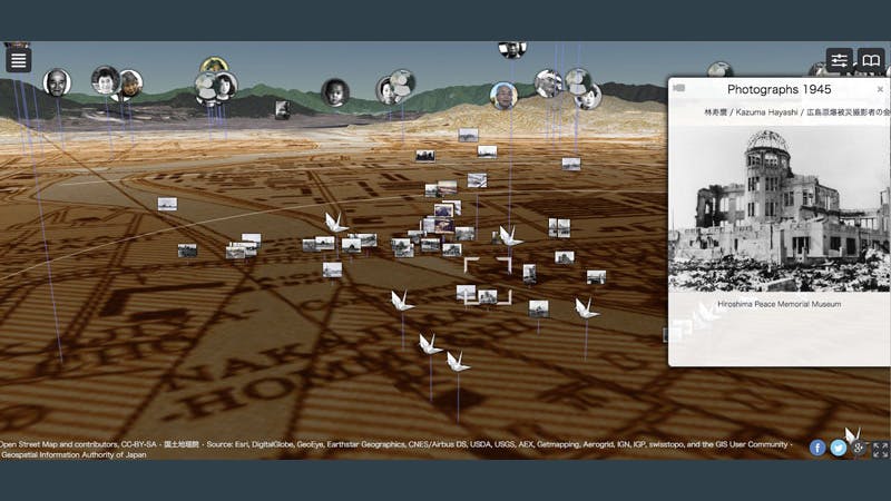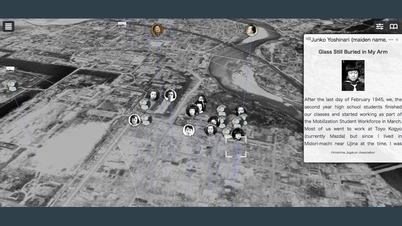 Using Cesium, the archive is able to provide a personalized experience. A user could be viewing a 1945 map while browsing survivors’ accounts and photos. They could then choose to switch to modern aerial photography to see how the location has changed since.