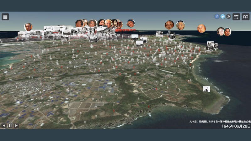 We are also planning to extend all of our archives to include relocation data of the victims with time indexes. We will then be able to visualize the specific locations of survivors at the time of a disaster and their movements afterwards. We’re excited to be able to generate these migratory patterns which could assist in disaster planning for communities. Our latest archive, The Battle of Okinawa in WWII (not yet translated to English) relies heavily on this feature and we feel it provides a compelling and emotional experience as the civilians flee battlegrounds.