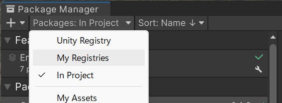6. In the Package Manager, click on the Packages drop-down and select My Registries.