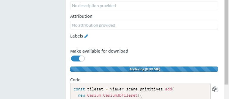 3Cesium ion will process the file to create the archive. Depending on the size of your asset, this may take some time.