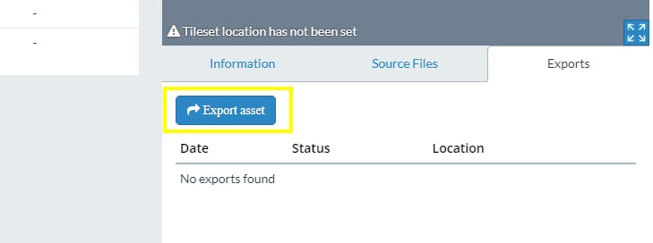 2Switch to the Exports tab in the asset details panel. In this tab, you can create new exports and view your export history.