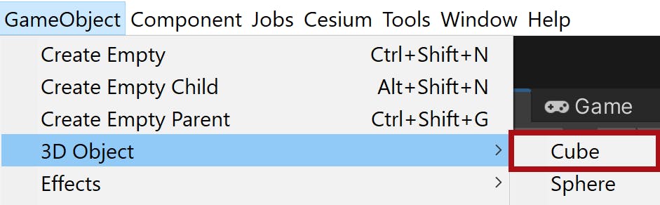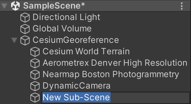 This will create a new game object nested under the CesiumGeoreference in the Hierarchy window.