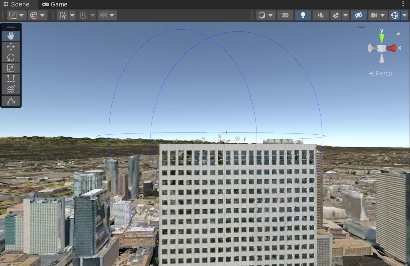For example, Unity’s built-in physics are not entirely compatible with georeferences or origin shifting. Gravity does not automatically account for the georeference’s origin, and it only works in one direction across the whole scene. Thus, any objects on the opposite side of the globe will fall away from the ground in the wrong direction. Additionally, the physics system can interpret origin shifts as large displacements of objects in Unity space. The displacements can cause undesired reactions or behaviors in physically-simulated objects.
