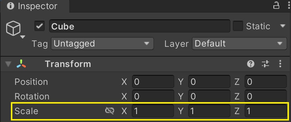 You can increase the cube’s Scale so that it is more visible from a distance. The cube in this tutorial is scaled by 5 in all directions.