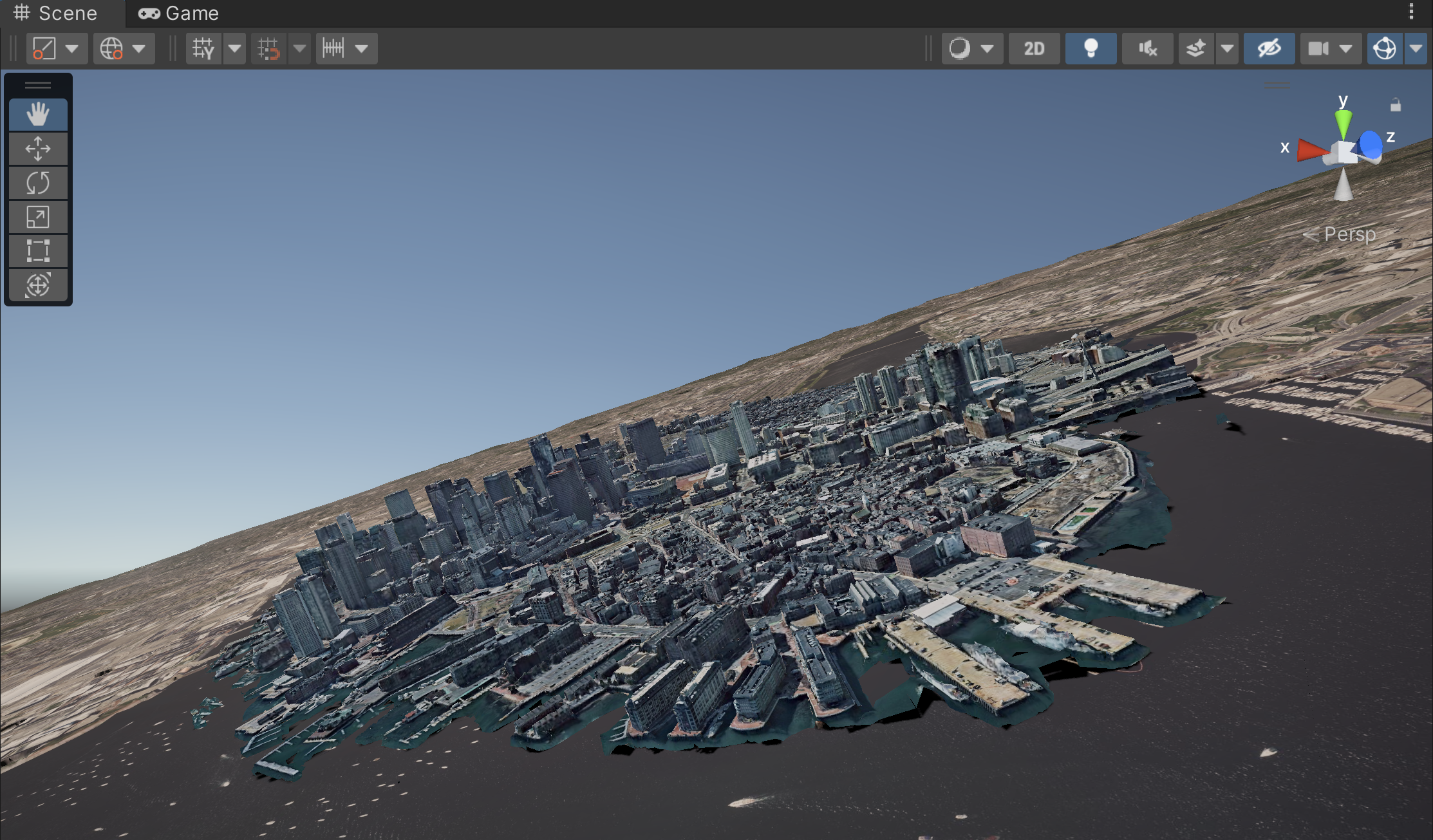 1. In the Hierarchy window, double-click on the Aerometrex Denver Photogrammetry object to center the tileset in the Scene View.