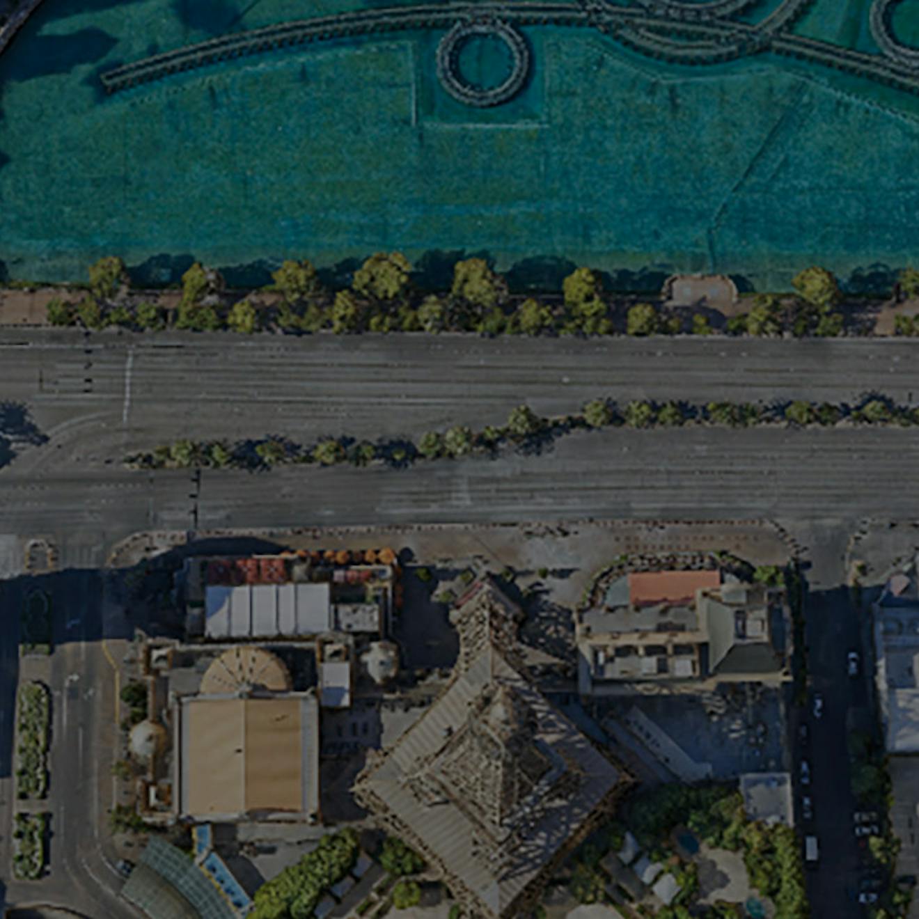 Screenshot of the Mirage hotel. Las Vegas, NV, USA. Data by Aerometrex. Created with Cesium for O3DE.